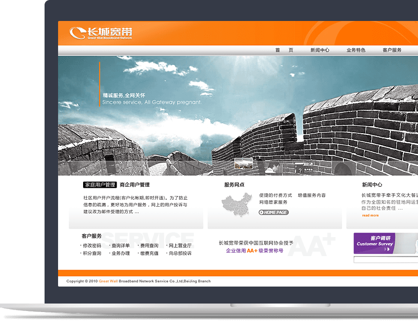 专区,方便用户及时享受线上服务。同时,长城宽带官网实现