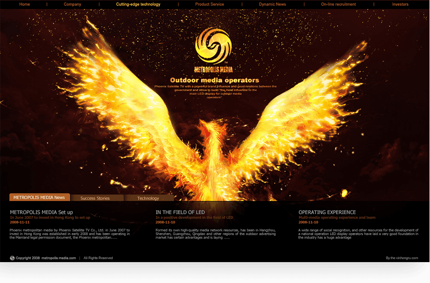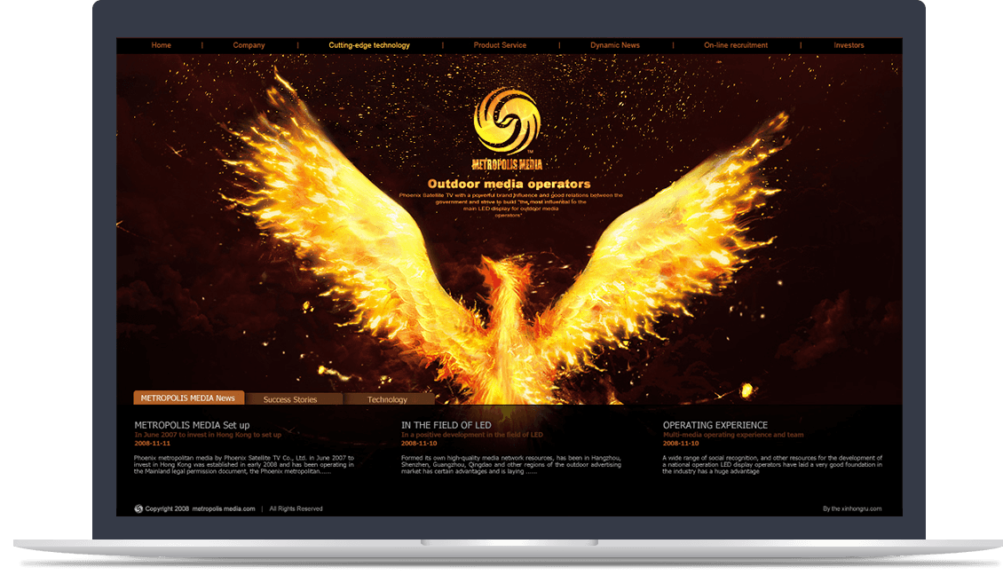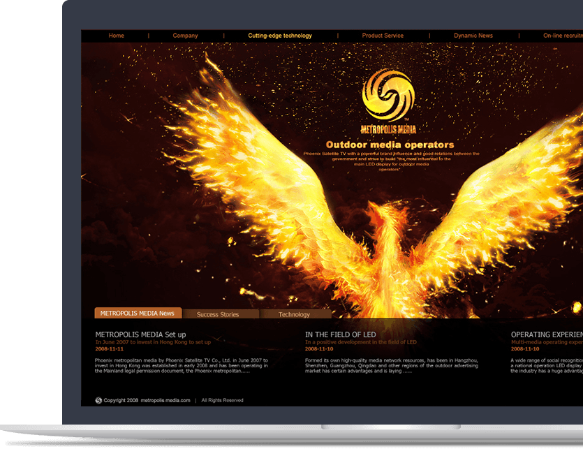 官网以凤凰传媒的标志性图标和凤凰图案作为创意灵感,通过炽热的火凤凰表现凤凰都市传媒澎湃的新闻热情和敢于承担的社会责任。页面视觉感官效果和凤凰都市传媒品牌调性高度吻合,成为凤凰都市传媒在互联网领域闪亮的名片。国际影响力