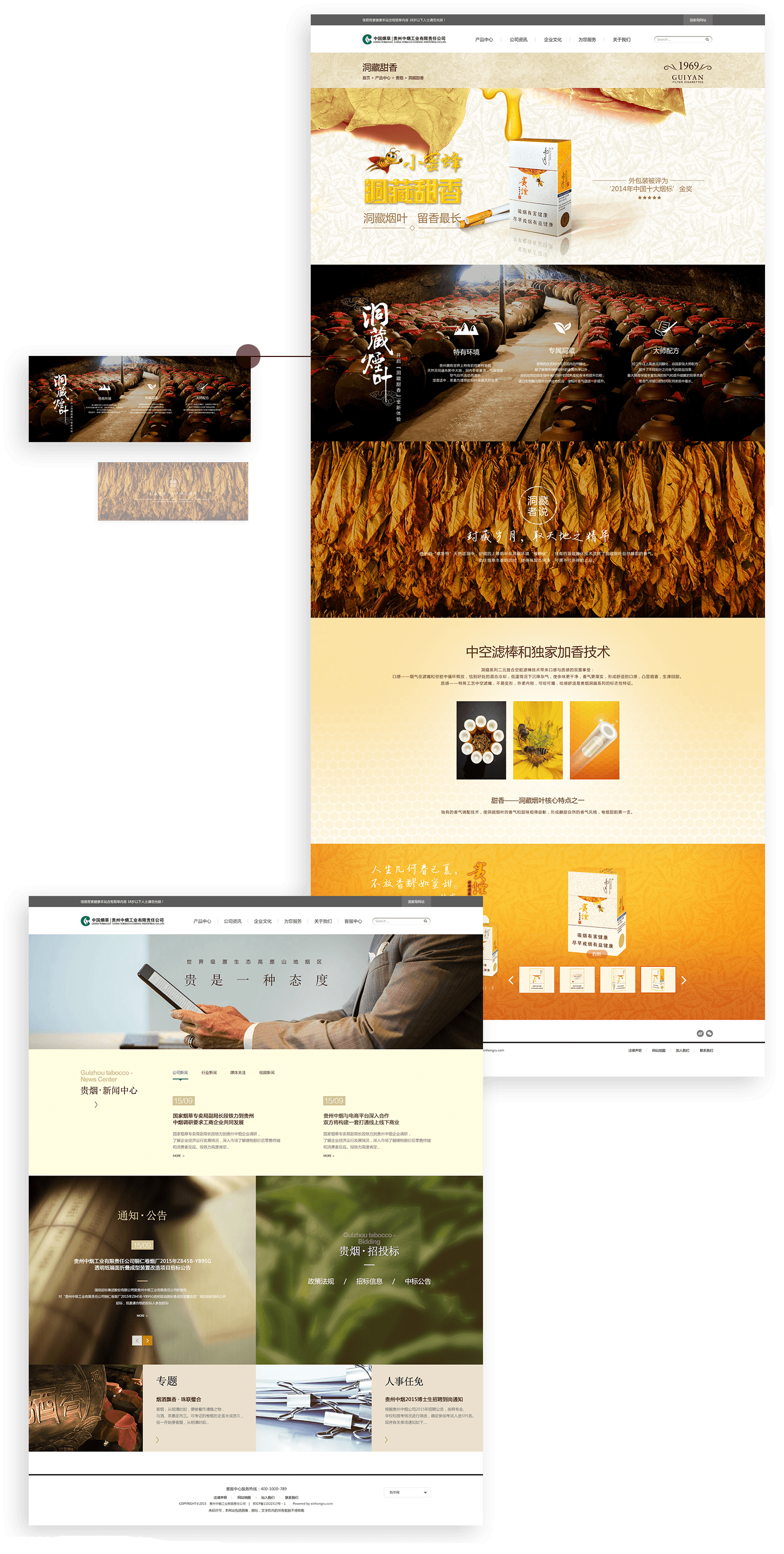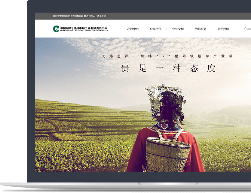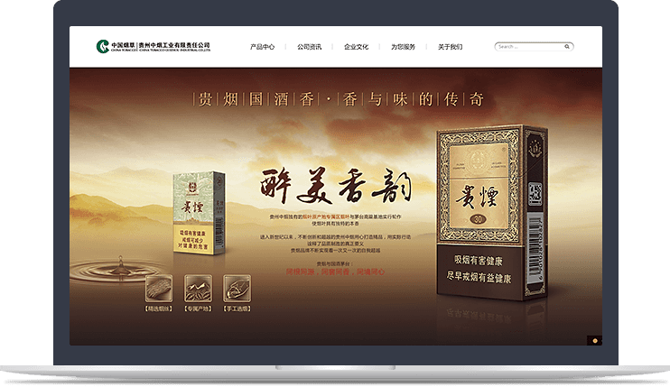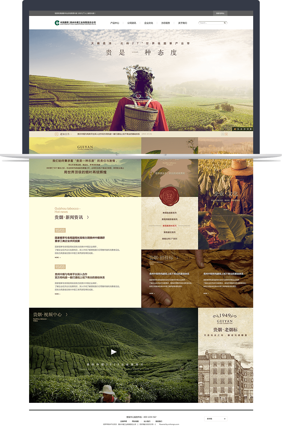 考虑到国家法律法规对烟草行业的诸多限制,网站整体设计以贵州烟草给当地人民带来的收益为切入点,强调社会责任,并提出“国”“家”“农”“商”文化主题,分别寓意“责任”“和谐”“绿色”“现代”。