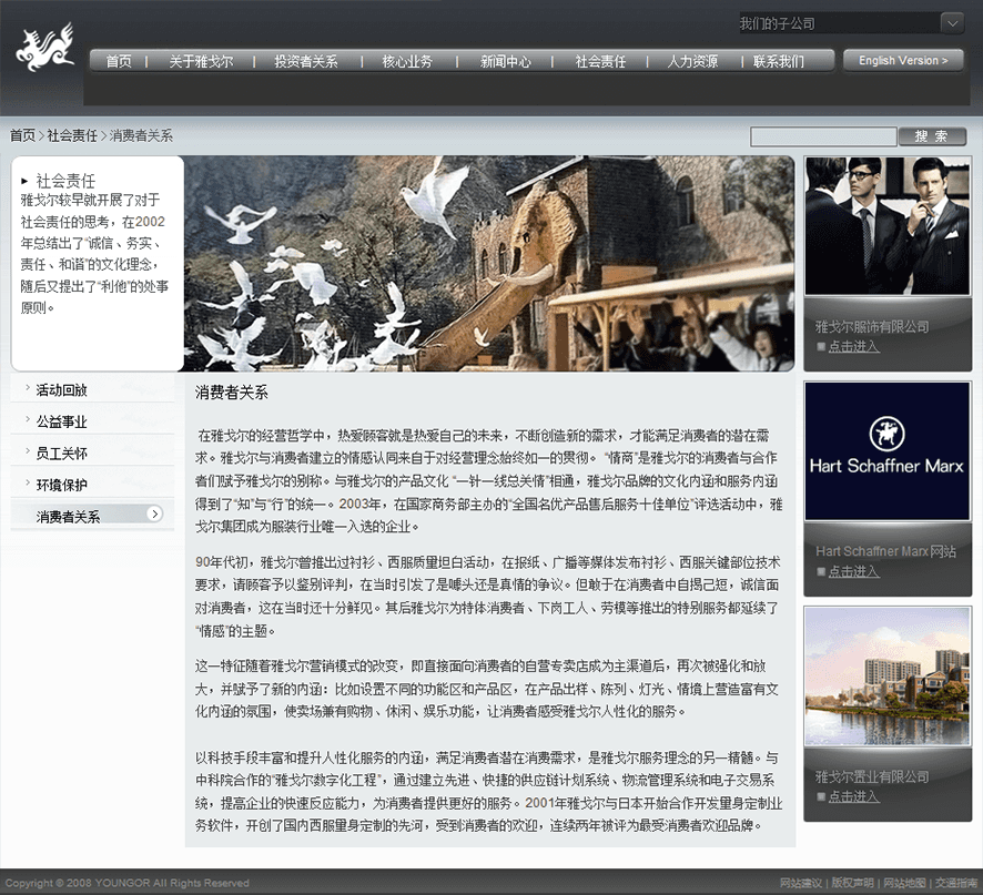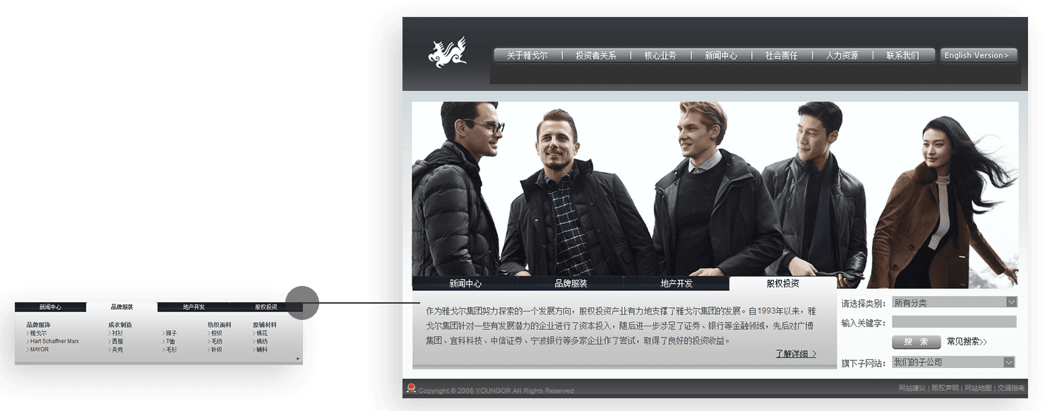 ledong乐动(中国)体育官方网站结合雅戈尔集团的整体视觉规范,为雅戈尔建设了集团官网及系列旗下品牌网站。不仅在设计上体现雅戈尔品牌