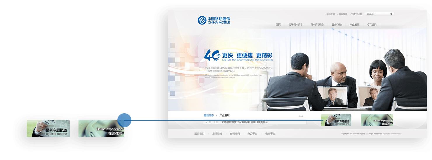 ledong乐动(中国)体育官方网站为中国移动提供整体的官网建设服务,从前期的策划到设计、制作、开发以及运维,
