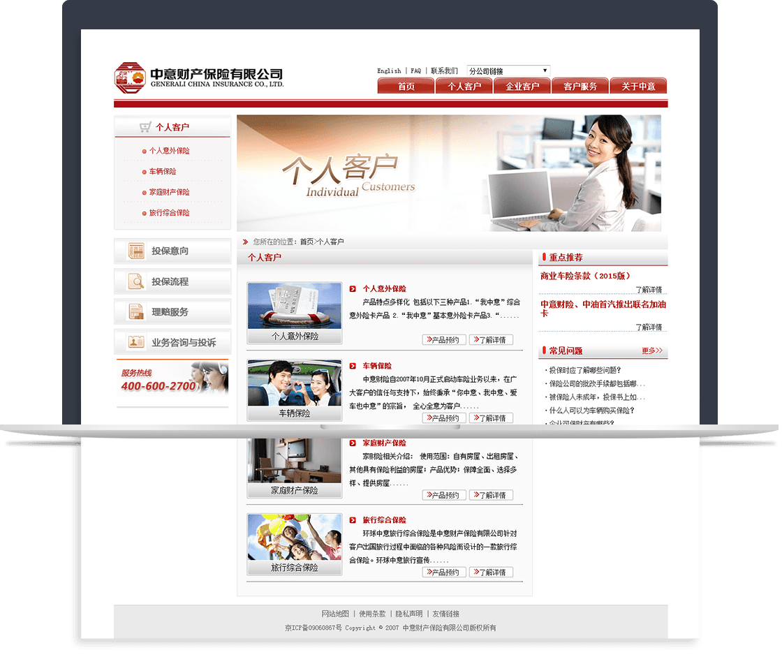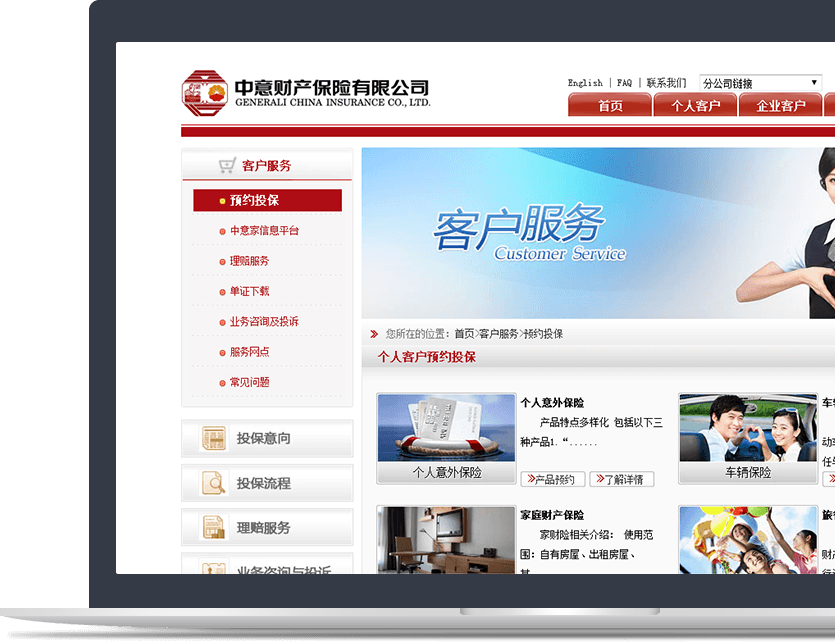 网站设置客户服务专区,支持客户下载文件、查找网点、在线提问,同时根据用户需求,详细介绍保险产品,引导客户进行咨询和购买。塑造品牌信任感