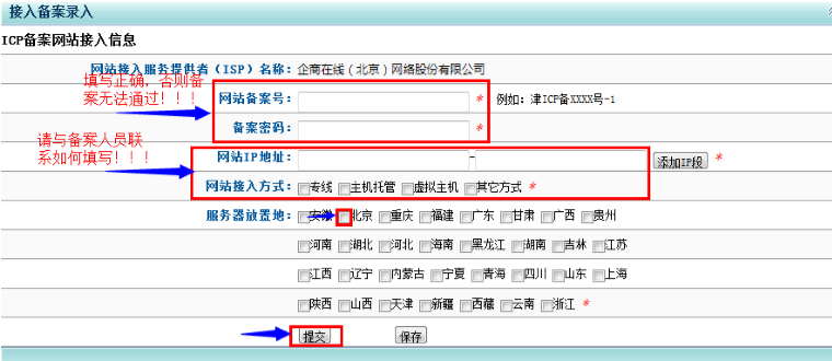 第四步:网上提交备案信息