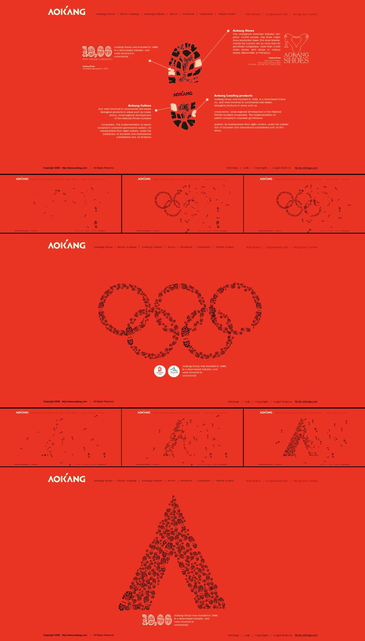 此次ledong乐动(中国)体育官方网站承办奥康集团官网改版工作,根据其行业特性及品牌优势,设计并制作一系列ledong乐动(中国)体育官方网站动画,因其颜色鲜明、风格独立、创意大胆而被业内专家及浏览受众广为关注。迄今为止,奥康网站已被多家创意、设计网站(互动社、SJ63、68design等)收录,并广受好评!