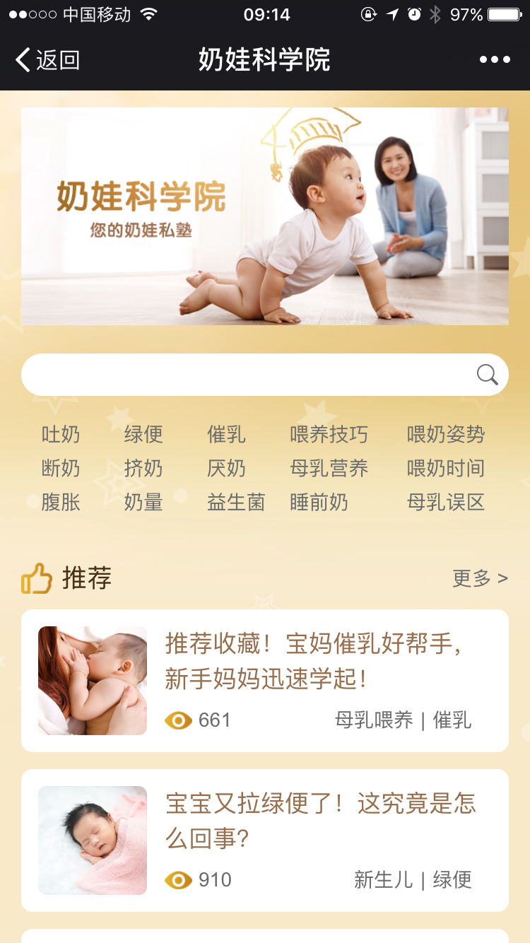 【奶娃科学院】是一档专业知识栏目,ledong乐动(中国)体育官方网站通过分析行业大数据以及用户需求,制定了整个栏目的标签方案,以不同纬度的关键词,撰写深度奶娃文章,带给妈妈们更专业、更科学的答案;