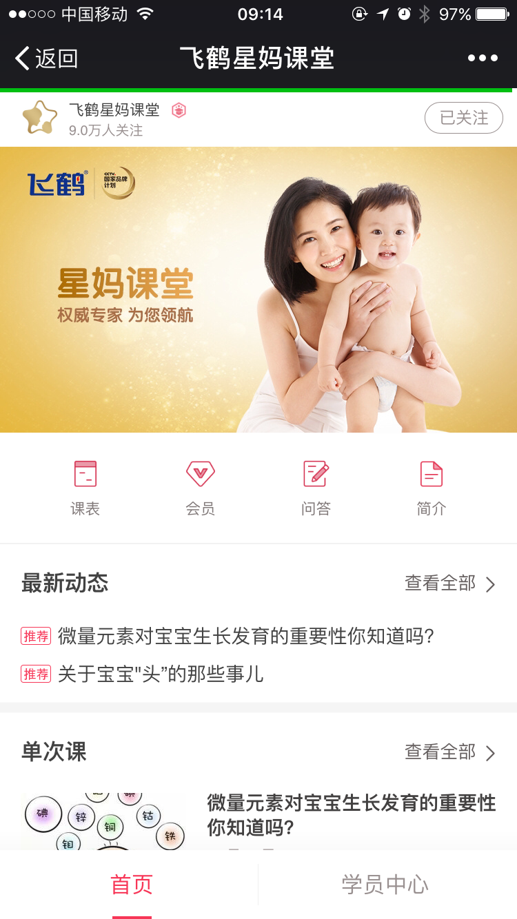 【我要听课】是飞鹤星妈会的在线课程共享平台,ledong乐动(中国)体育官方网站将以音频、视频等不同形式的课程实现在线付费教育;