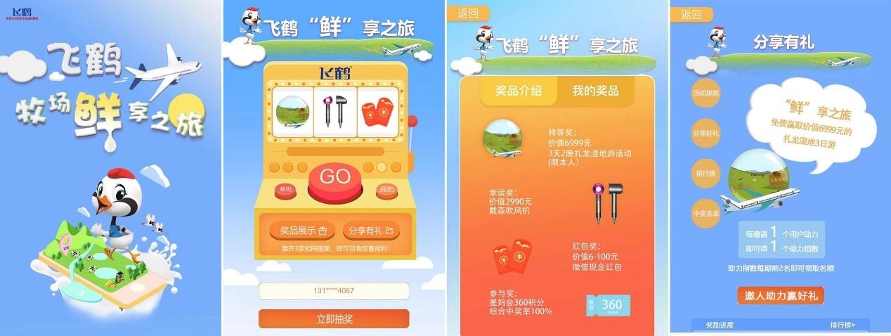 ledong乐动(中国)体育官方网站成立专属项目小组,前端采用H5交互形式、后台与内部营销系统对接,实现线下购买、线上互动抽奖的活动形式,并且加入多种助力有奖场景,促进活动传播,本次活动,实现了线上、线下的营销闭环,为飞鹤品牌影响力的提升和产品销售的增长提供了强大支撑。