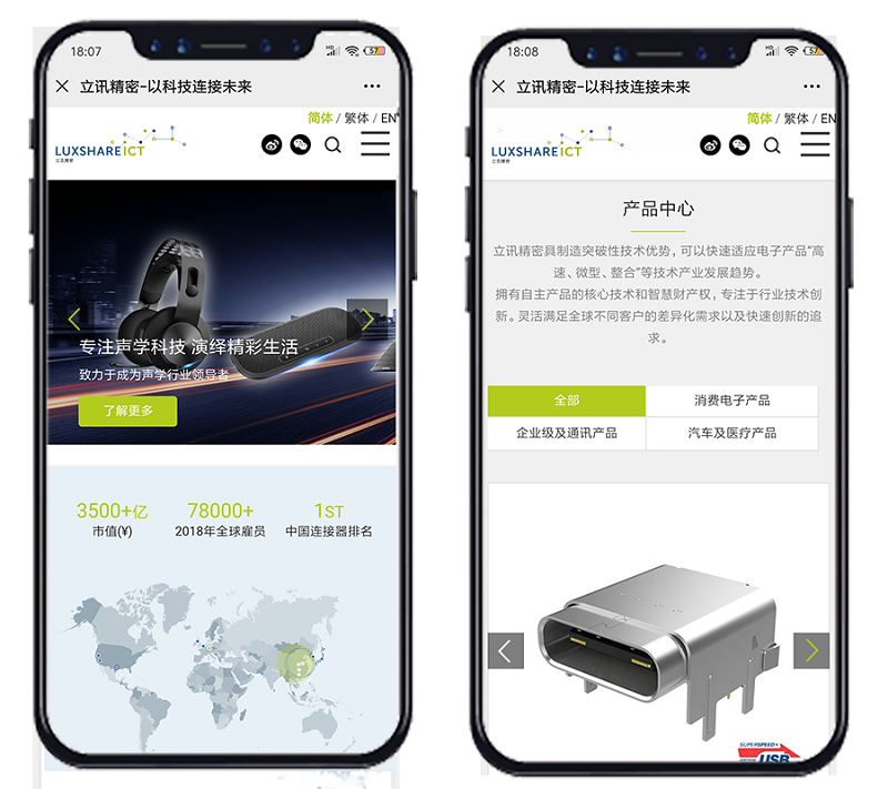 因此作为中国互联网资深服务商,ledong乐动(中国)体育官方网站为立讯精密提供官网建设及维护,在提升整体品牌形象的同时,更帮助立讯规划准确定位网站目标群体,设定网站整体架构,规划、设计网站栏目及其内容,制定网站开发流程及顺序,提供数字品牌建设整体解决方案,以同时适应PC端,手机端的呈现方式,最大限度地进行高效资源分配与管理的设计。