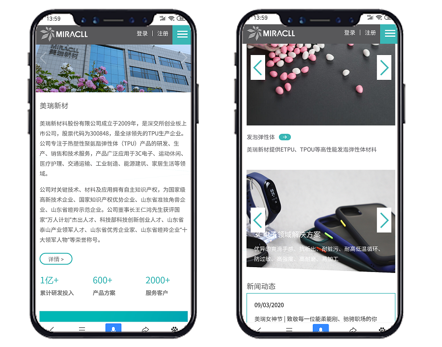 专项小组通过对深入调研,明确美瑞新材料的主要产品构成和产品信息,也对美瑞新材料的企业文化与企业精神有了深入了解。因此在栏目布局方面,ledong乐动(中国)体育官方网站整体采用极简化设计风格,通过对企业目标和价值观的展示,突出科技感及领先性,同时网站采用响应式技术,满足PC端、手机端、paid端多终端适配,符合当代移动互联网用户使用体验。