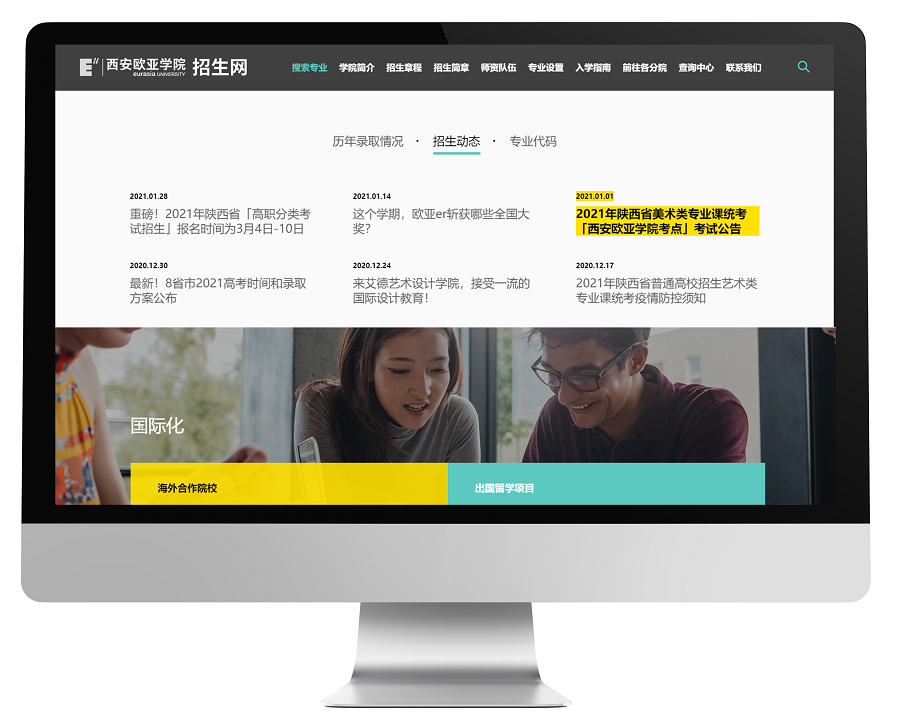 本次项目主要目的是通过对招生网站的升级,面对互联网环境下成长的全新一代准大学生进行品牌宣传,提升西安欧亚学院品牌形象、扩大品牌声量、最终提升招生工作。ledong乐动(中国)体育官方网站服务西安欧亚学院已有11年,为数字化校园系统提供迭代更新、系统升级、各平台系统的融合扩展工作,得到了院方各领导的高度认可与支持。