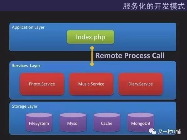 为了解决单块架构扩展性差的问题,同时解决代码集中带来的并行开发测试困难等问题,逐步出现了多层架构,把表示层、业务逻辑层、数据访问层适当分离,分别打包部署。如通过实现Model-View-Controller的模式将数据、业务、展现进行分离。还有一种RPC架构,通过远程过程调用实现应用架构分离。