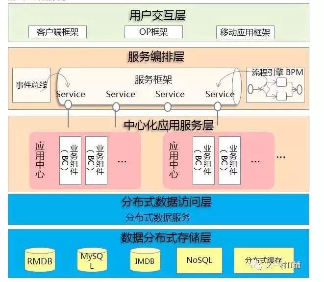 微服务架构是对上面分布式云化架构的拓展、服务化的进一步延伸,通过对服务进一步细化,形成微服务,运行于单独的容器平台,可实现云的弹性和敏捷,如弹性伸缩、线上线下一致的环境、提升自动化运维能力等。