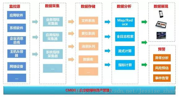 CMDB(企业软硬件资产管理) CMDB在统一监控平台中是很重要的一环,监控源虽然种类繁多,但是他们大都有着关系,如应用运行在运行环境中,应用的正常运行又依赖网络和存储设备,一个应用也会依赖于其他的应用(业务依赖),一旦其中任何一个环节出了问题,都会导致应用的不可用。CMDB除了存储软硬件资产外,还要存储这样一份资产间的关联关系,一个资产发生了故障,要能根据这个关系迅速得知哪些其他的资产会被影响,然后逐一解决问题。